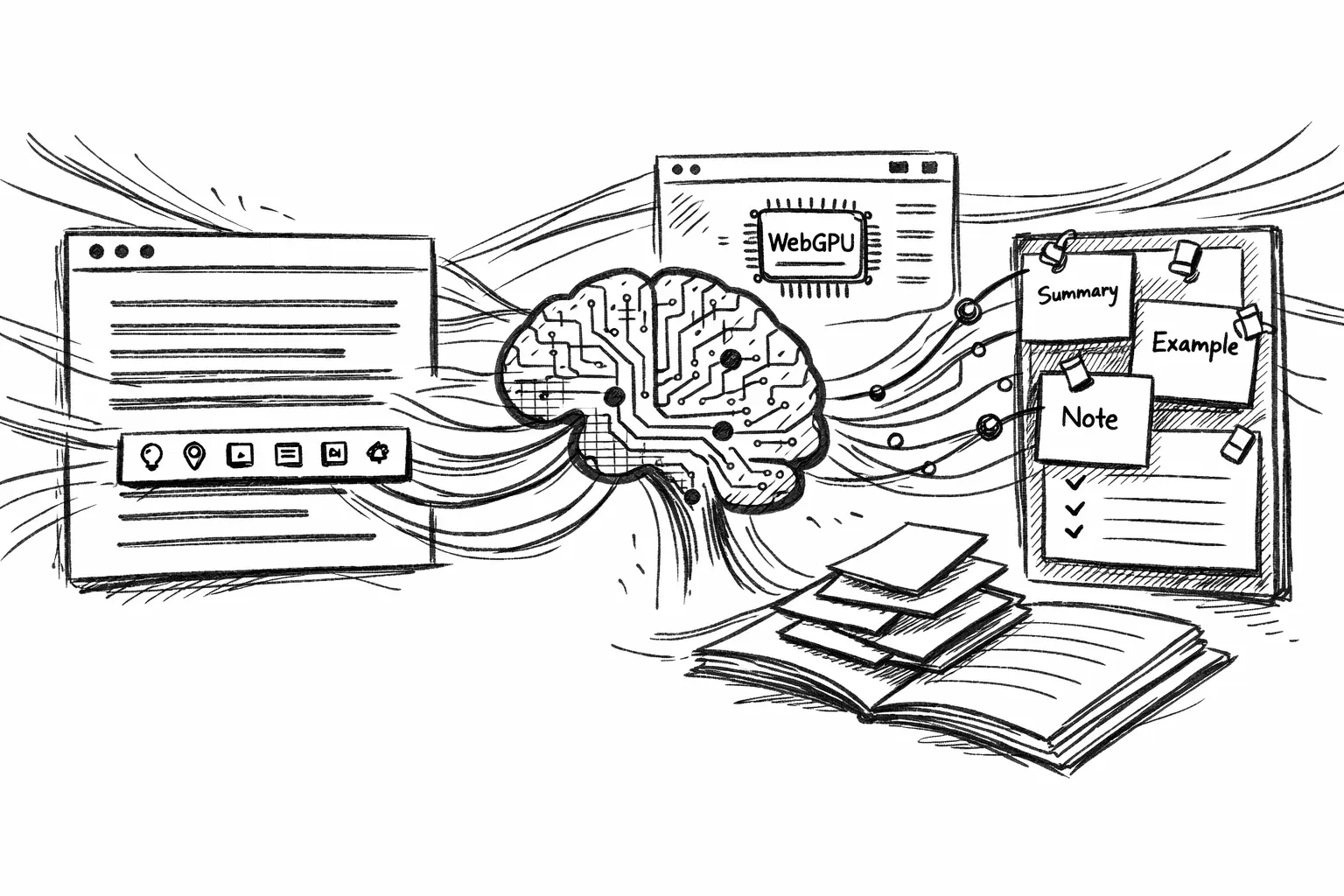 No “chat UI”. No separate page. Just: reading → thinking → keeping the thought. Everything happens in (and on) your browser.